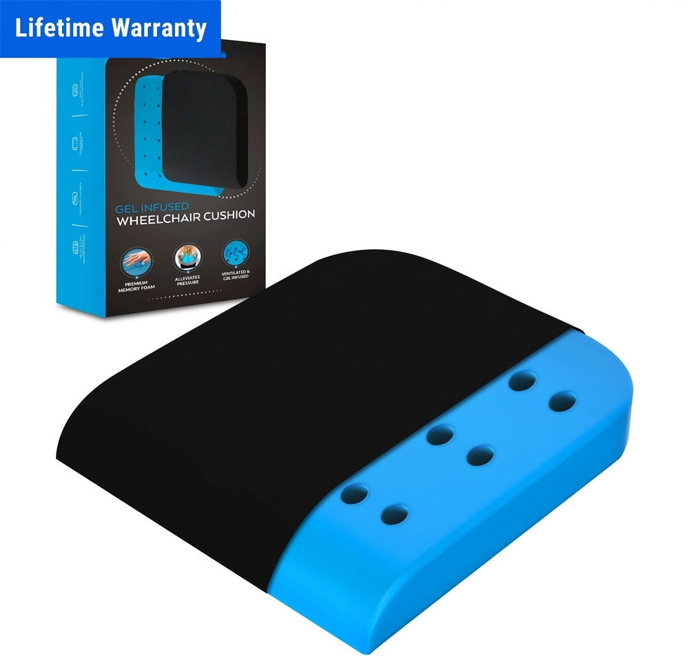 Most wheelchairs and mobility scooters lack the cushioning and padding needed for supportive extended sitting. The Wheelchair Cushion adds support to cradle the coccyx; tailbone; bottom; legs; and lower back; effectively reducing pressure in the lower body. The seat cushion is made with 100% gel infused memory foam for optimal support; while deliberately placed ventilation holes keep you sitting cool all day long. Lightweight and portable; it’s ideal as a wheelchair cushion; office chair cushion; and car seat cushion. Foam seat cushion will never go flat or sag; has a non-slip rubber bottom; and a machine washable cover. Add the Wheelchair Cushion to your list of must-have wheelchair accessories and mobility scooter accessories.