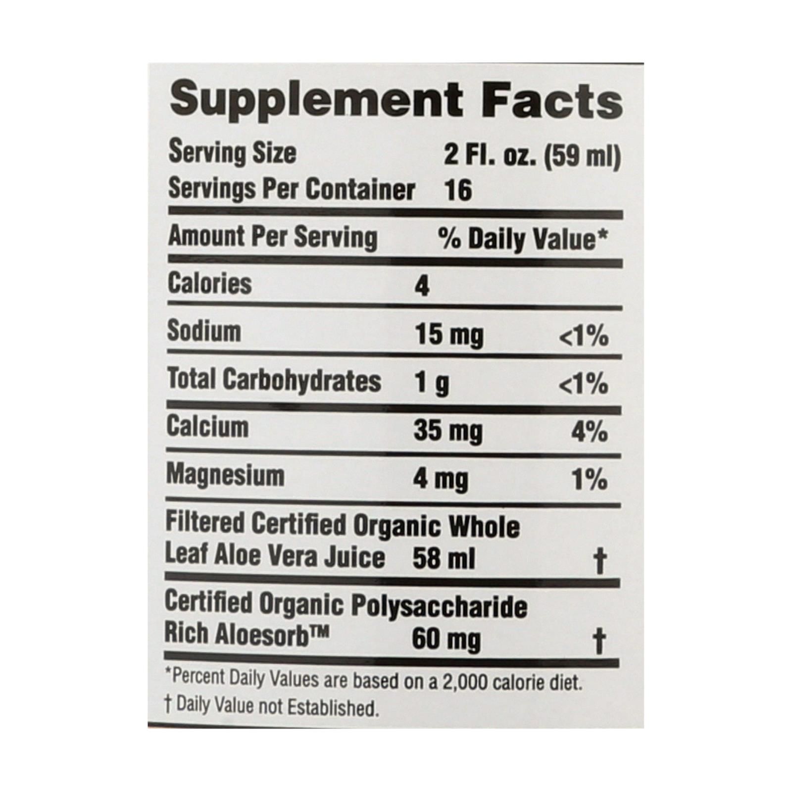 Lily of the desert preservative free whole leaf aloe vera juice is made from certified usda organic ingredients including 99% aloe vera juice rich in antioxidants. One 32 oz. Bottle of lily of the desert is a kosher dietary supplement with 35 mg. Of calcium per serving to help support a healthy immune system and digestive regularity.